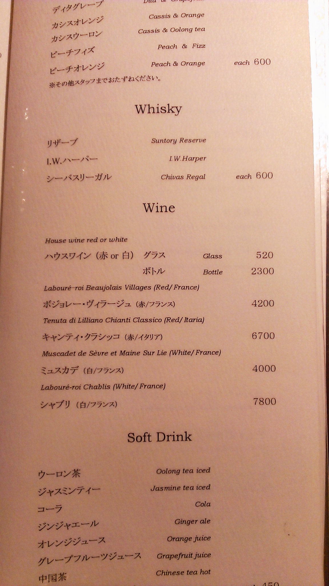 待ち時間を利用して、夜に供されるお酒などを確認。